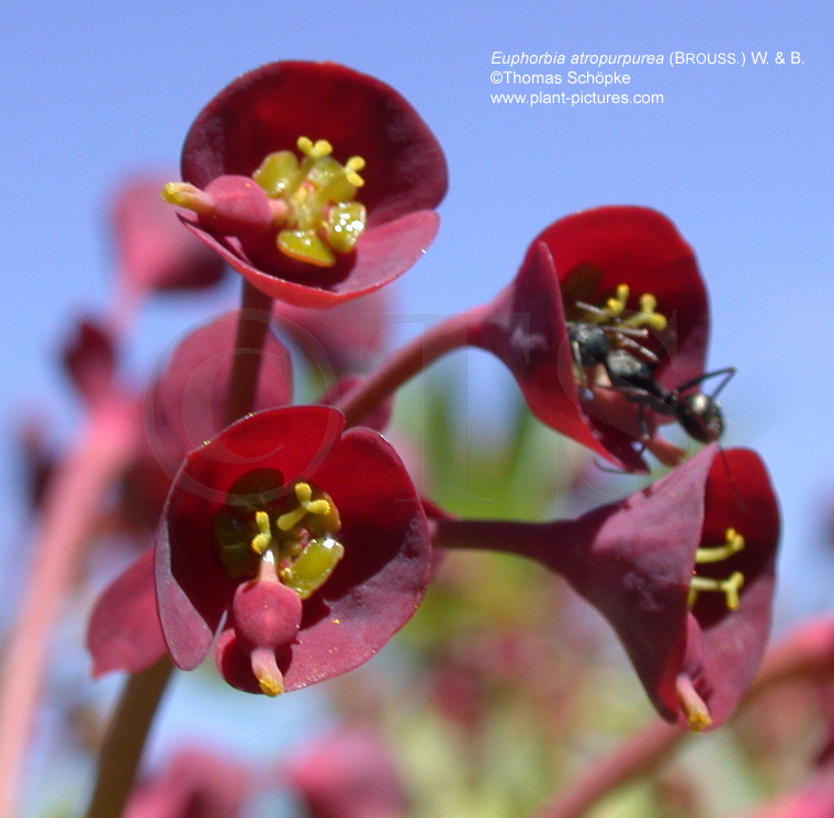 222 Gattungen mit 5980 Arten; untergliedert in die 5 Unterfamilien Peroideae HASSKARL, Cheilosoideae (MÜLLER ARGOVIENSIS) K. WURDACK & PETRA HOFFMANN, Acalyphoideae KOSTELETZKY s. str., Crotonoideae BURMEISTER und Euphorbioideae BURNETT. Darüber hinaus Familiengrenzen nicht eindeutig geklärt. Zahlreiche, in der Vergangenheit zur Euphorbiaceae gezählte Gattungen werden heute separaten Familien zugeordnet. Bei diesen handelt es sich um die Phyllanthaceae MART. (59 Gattungen), Putranjivaceae ENDL. (3 Gattungen) und Picrodendraceae SMALL (24 Gattungen). Die Euphorbiaceen sind wie folgt charakterisiert: meist milchsafthaltige (Ausnahmen!), z. T. sukkulente Bäume, Sträucher, Kräuter und Lianen, teilweise kaktusartig (z. B. Euphorbia handiensis) mit der Sprossachse als Photosyntheseorgan; Mesophyten und Xerophyten; Blätter winzig bis groß, überwiegend wechselständig, krautig, ledrig, fleischig, membranartig oder in Dornen umgewandelt, Nebenblätter vorhanden, diese jedoch je nach Habitus der Pflanze reduziert zu verzweigten, haarartigen Strukturen oder zu Drüsen; Pflanzen monözisch (Blüten häufig in Cyathien, welche aus 1 weiblichen und mehreren männlichen Blüten zusammengesetzt sind; s. Abbildung 1 und 2 von Euphorbia atropurpurea), diözisch (s. Abbildung eines weiblichen und eines männlichen Blütenstands von Euphorbia balsamifera), sehr selten zwittrig, entemophil; Blüten winzig, klein oder mittelgroß, radiärsymmetrisch, in Infloreszenzen mit zymöser endständiger Einheit, diese z. T. von auffälligen Hochblättern umgeben; Perianth sepalin, reduziert, fehlend oder (selten) petalin, falls vorhanden K5, frei oder verwachsen, C5, frei, A1-1000, nur mit fertilen Staubblättern, G(2-)3, selten 4-30, synkarp, Fruchtknoten oberständig, meist mit 3 Griffeln und 3 Narben; überwiegend (nicht fleischige) Kapsel- oder Nussfrüchte; gemäßigte Zone, Subtropen und Tropen: Kosmopoliten, nur in der Arktis fehlend. Taxonomische Einordnung: Dahlgren - Überordnung Malviflorae / Ordnung Euphorbiales, Cronquist - Unterklasse Rosidae / Ordnung Euphorbiales, APG - Unterklasse Rosidae / Eurosiden I / Ordnung Malpighiales. Nutzpflanzen: Hevea brasiliensis (Kautschuk), Manihot esculenta (Maniok), Ricinus communis (Rizinusöl), verschiedene Arten der Gattung Euphorbia als Zierpflanzen kultiviert, darunter insbesondere sukkulente Arten in Trockengebieten. Arzneipflanzen: Croton tiglium (Crotonis oleum - Crotonöl), Hevea brasiliensis (Kautschuk), Ricinus communis L. / Christuspalme, Hundsbaum, Rizinus, Wunderbaum (Natives Rizinusöl - Ricini oleum virginale). Bilder: Siehe Pflanzenbildergalerie, Familie Euphorbiaceae. Quellen und weitere Informationen: biodiversity.uno.edu/delta*, Stevens, P.F. (2001 onwards). Angiosperm Phylogeny Website*. |